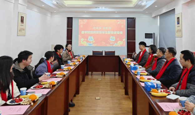 辰龙迎新辞旧岁,祝愿新年胜旧年。2月1日上午,在春节来临之际,36365线路检测中心慰问留校生新春茶话会在一派祥和喜庆的氛围中举行。36365线路检测中心党委书记李锦红、院长周绍兵、副书记于楠、团委书记胡豪、辅导员张佳豪与留校学生代表欢聚一堂,共叙过往经历,畅谈新年气象。此次会议由胡豪主持。