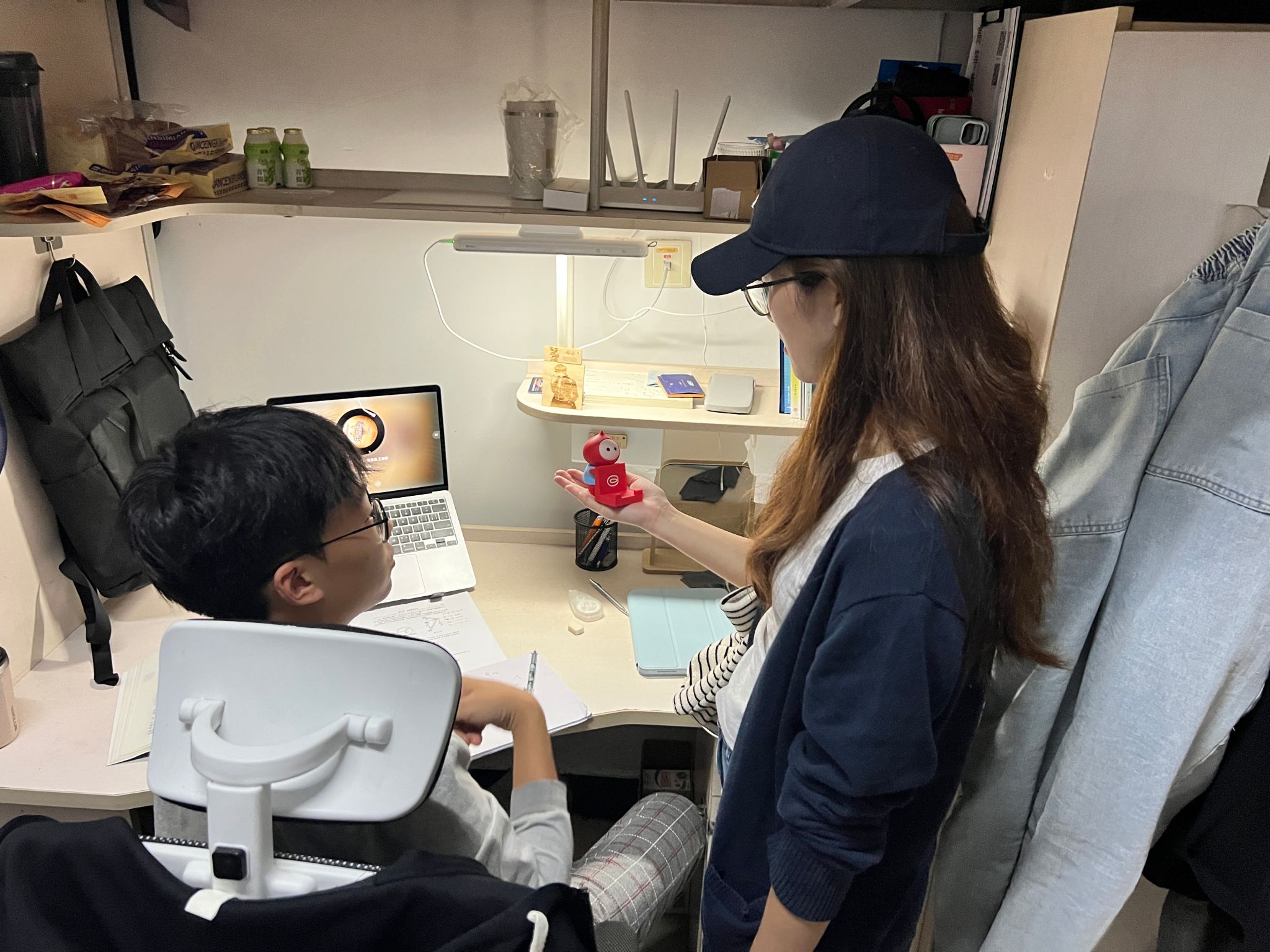 在本科生宿舍,党委副书记于楠代表学院党政向同学们送上了节日慰问,并送给同学们象征团圆的月饼,提前祝福同学们中秋快乐。辅导员亲切关怀学生中秋国庆长假的去向,反复叮嘱学生做好离校登记、外出注意安全、收假及时返校。对于假期留校的同学,辅导员动员大家积极参加9月29日的游园活动,在校内与同学们过一个欢乐的中秋节。同学们还向辅导员老师展示了自己工训课的成果和义务献血的纪念品,表达了参与学习与实践获得成长的喜悦。
