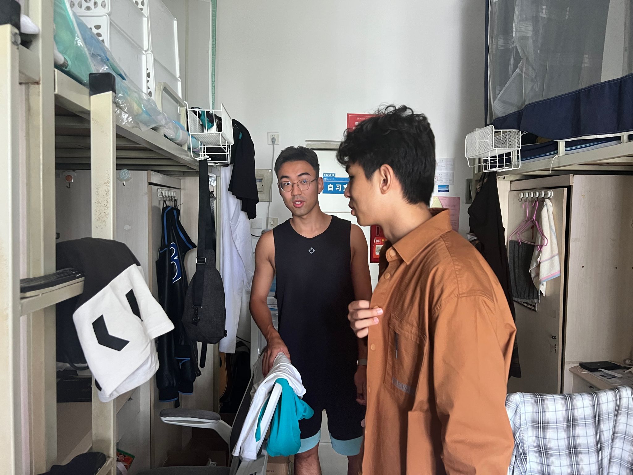 在研究生宿舍,辅导员仔细询问了2023级新同学在住宿、饮食方面是否适应,新学期的学习和生活是否有困难。尤其是因设备原因调整宿舍的同学们,辅导员亲切关怀宿舍调整后的搬迁是否已顺利完成,新的宿舍是否能够满足同学们的住宿需求。在深入宿舍的过程中,辅导员老师鼓励同学们积极与导师、与师兄师姐、与同学们交流,保持良好的关系,在团队中快速成长。此外,辅导员对于中秋国庆假期的安全问题,也做了重点提醒。