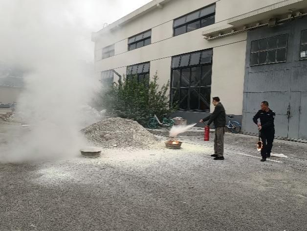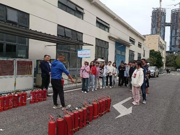 讲座结束后,全体同学在老师和志愿者的带领下来到工业中心内的空地进行消防演练。保卫处老师详细讲解了常见消防器材——干粉灭火器的使用方法,随后,同学、老师分组轮流进行灭火演练。