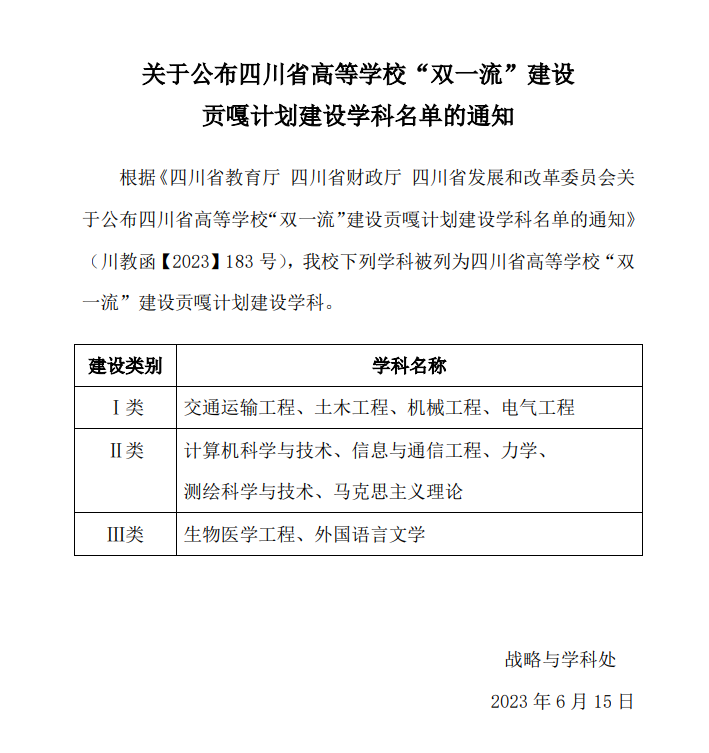近日,四川省教育厅、省财政厅、省发改委正式公布四川省高等学校“双一流”建设贡嘎计划学科建设名单,生物医学工程学科成功入选。