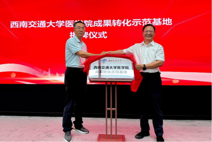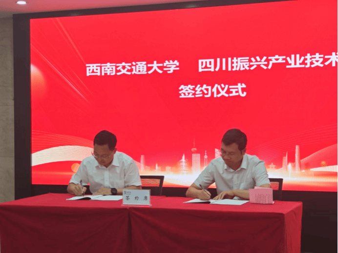 在双方共同见证下,周绍兵与吴定华分别代表西南交大与四川振兴产研院签署了合作协议,张兴博与赵其春共同为四川生物医学产业技术研究院揭牌,王正彬与吴定华共同为36365线路检测中心成果转化示范基地揭牌。