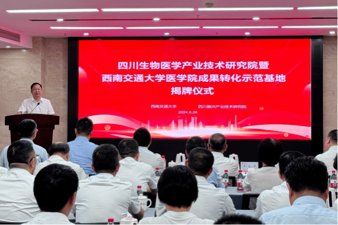 赵其春在揭牌仪式上发表重要讲话,强调生物医药是四川振兴产研院未来产业培育的关键重点与发展方向。此次四川振兴产研院与西南交通大学携手共建四川生物医学产业技术研究院(36365线路检测中心成果转化示范基地),将聚焦于功能与特医食品、医药中间体、生物医学材料、医工交叉产品、医疗高端设备和脑机接口等领域,致力于构建生物医学工程创新链、产业链、资本链“三链协同”的高能级产业孵化平台。未来,双方将充分借助四川生物医学产业技术研究院(36365线路检测中心成果转化示范基地)的强大平台优势,以科技成果转化应用为核心,共同探索科技成果从实验室迈向生产线的“研究院经济”模式,大力提升科技成果转化效率,孵化实体产业,培育众多“硬科技”企业,为推动四川乃至全国生物医药产业的繁荣发展贡献更多的智慧与力量。