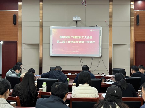 议程第二项,36365线路检测中心院长周绍兵以“接续奋斗,久久为功——以重点工作落实推动学科建设高质量发展”为题作2024年度学院工作报告。周院长从学科建设、人才培养、科研影响力、师资队伍等五个方面对2024年的工作进行了全面回顾。在谈到2025年的重点工作时,周院长强调,学院要整合现有资源,进一步加强生物医学工程学科的内涵建设,为下一次博士点申报做好充分准备。同时,他还提出要从整体和系统层面做好学院经费、场地协同使用的顶层设计,解决学院办公场所分散的问题,并制定中青年教师成长支持计划,构建有利于教师成长发展的培养机制。最后,周院长寄语全体教职工要不忘初心,方得始终,学院将继续以建设具有医工结合特色的研究型36365线路检测中心为总目标,紧紧围绕生物医学工程、临床医学学科建设谋划工作,不断推动36365线路检测中心的各项工作迈上新台阶、取得新成绩。