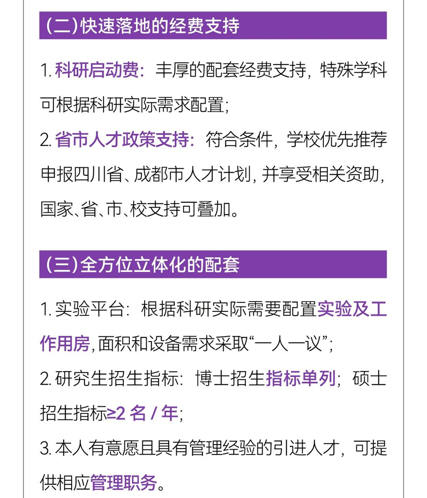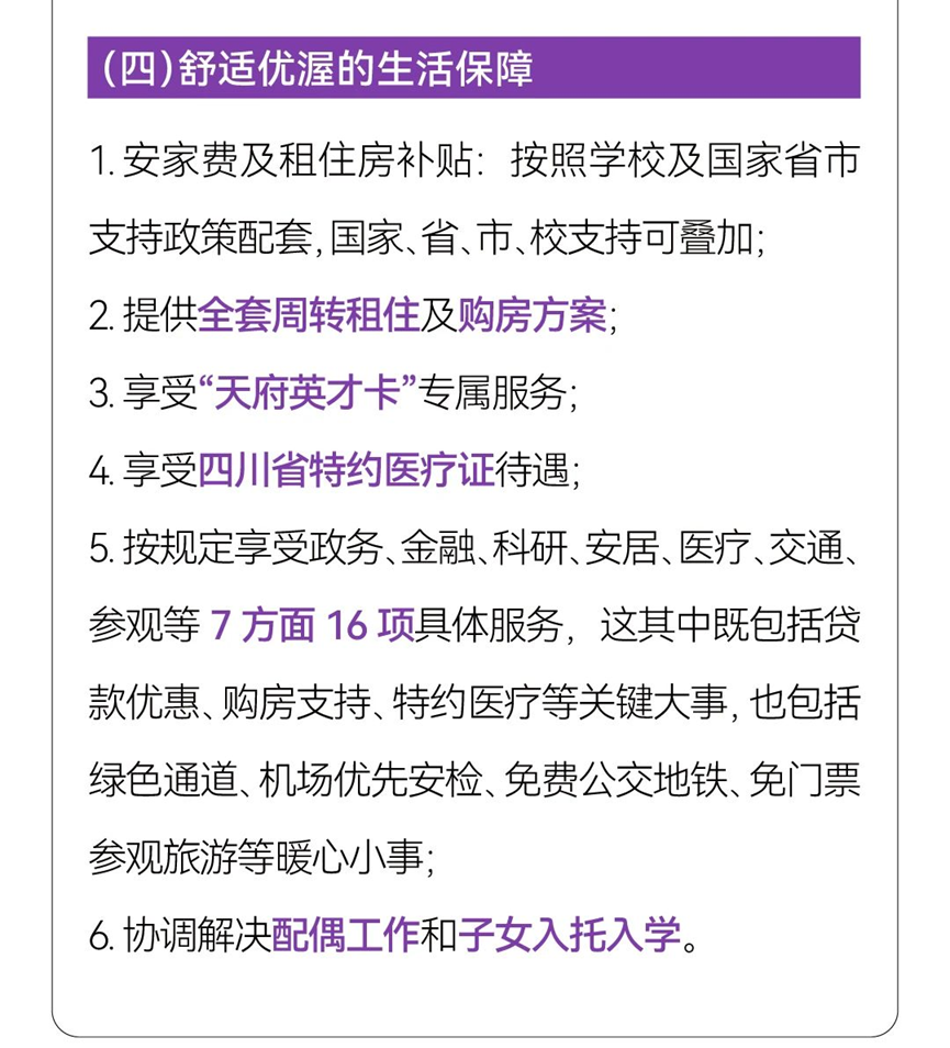 (五)符合两家附属医院人才引进政策规定的,还可以柔性引进至成都市第三人民医院、西部战区总医院工作,享受相应待遇。