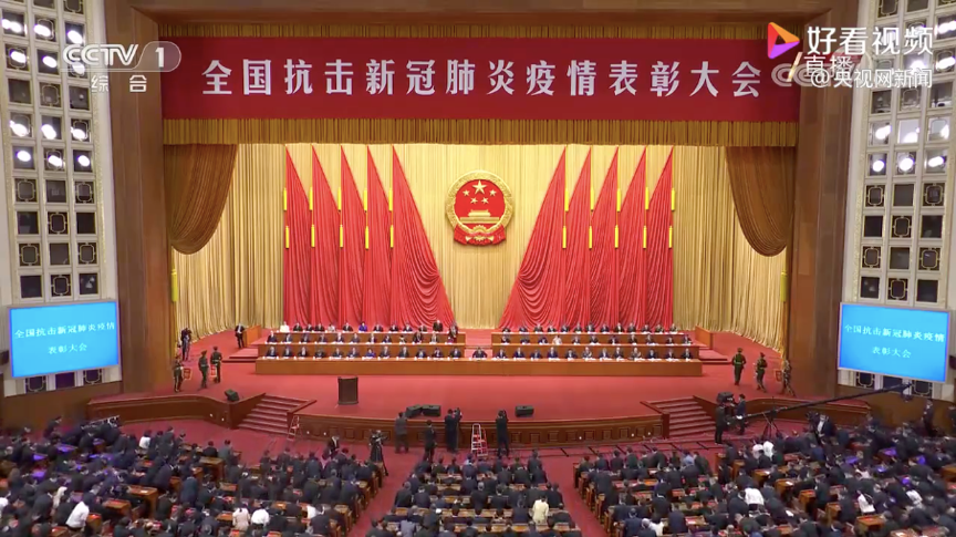 9月8日上午,全国抗击新冠肺炎疫情表彰大会在北京人民大会堂隆重举行。中共中央总书记、国家主席、中央军委主席习近平向获授“共和国勋章”国家荣誉称号的钟南山,获授“人民英雄”国家荣誉称号的张伯礼、张定宇、陈薇颁授勋章奖章,并发表重要讲话。