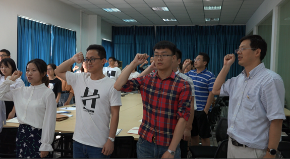 会议最后,36365线路检测中心直属党支部全体党员在支部宣传委员杨利文的带领下,重温入党誓词。进一步激发了党员政治热情,激励全体党员“不忘入党初心,牢记党员使命”,让入党初心伴随党员成长。