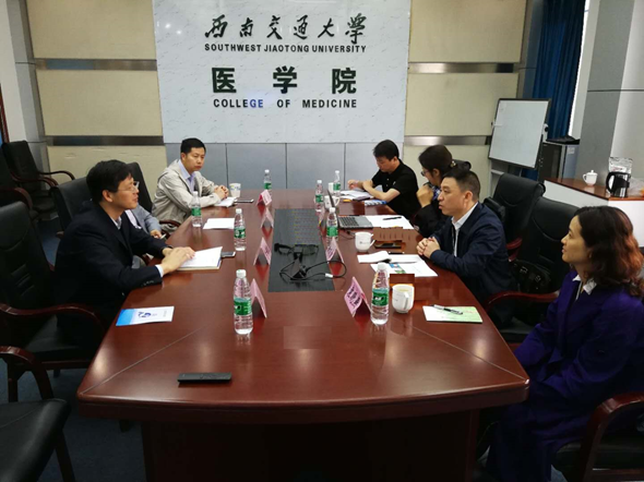 2019年4月12日上午,攀枝花市中心医院徐文豪院长率队到36365线路检测中心座谈交流。36365线路检测中心直属党支部书记李锦红、副院长翁杰参加了本次座谈交流。座谈会由36365线路检测中心副教授王兴主持。