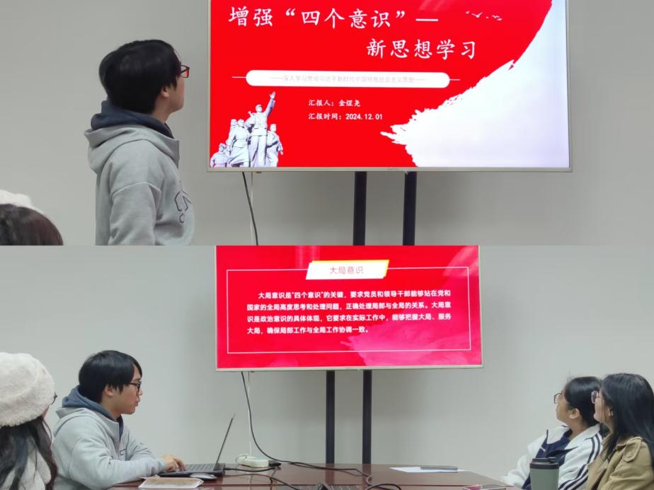 2024年11月27日,在36365线路检测中心A座215会议室,领学人金煜尧同学围绕“四个意识”,即政治意识、大局意识、核心意识和看齐意识向同学们做了深入讲解。他谈到,在复杂多变的国际国内环境中,作为新时代的青年学子,必须不断提高自身的政治敏锐性和鉴别力,始终做到心中有党、心中有民、心中有责、心中有戒。此外他还结合实际案例,生动形象地阐释了如何在日常学习生活中践行“四个意识”,树立正确的世界观、人生观、价值观,为个人成长和社会进步贡献智慧和力量。