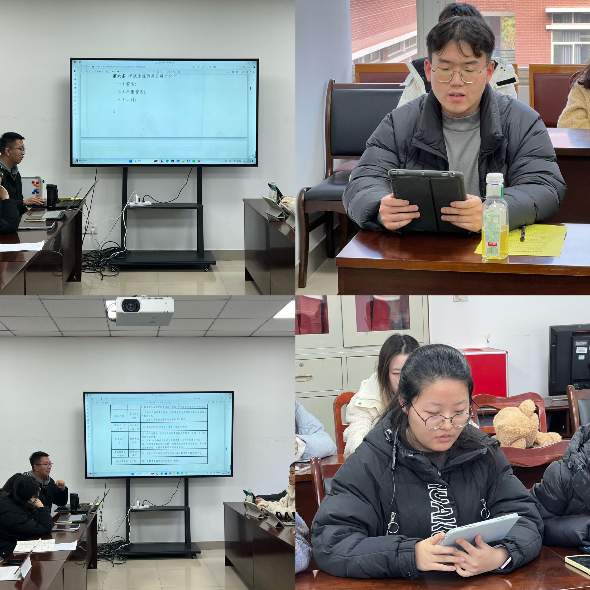为了强化学生党员对学校规章制度的认识,党支部举办了一场专题学习会。四位正式党员分别领学了《西南交通大学本科生考试违规处理办法》《西南交通大学本科考试考场管理办法》《西南交通大学学生纪律处分规定》等重要文件,并结合近年来的违规案例进行深入剖析。会议最后,党支部党员之间进行了积极的交流互动,大家纷纷表示将认真备考,并会将相关注意事项传达给班级同学,共同维护良好的考试秩序和学习环境。