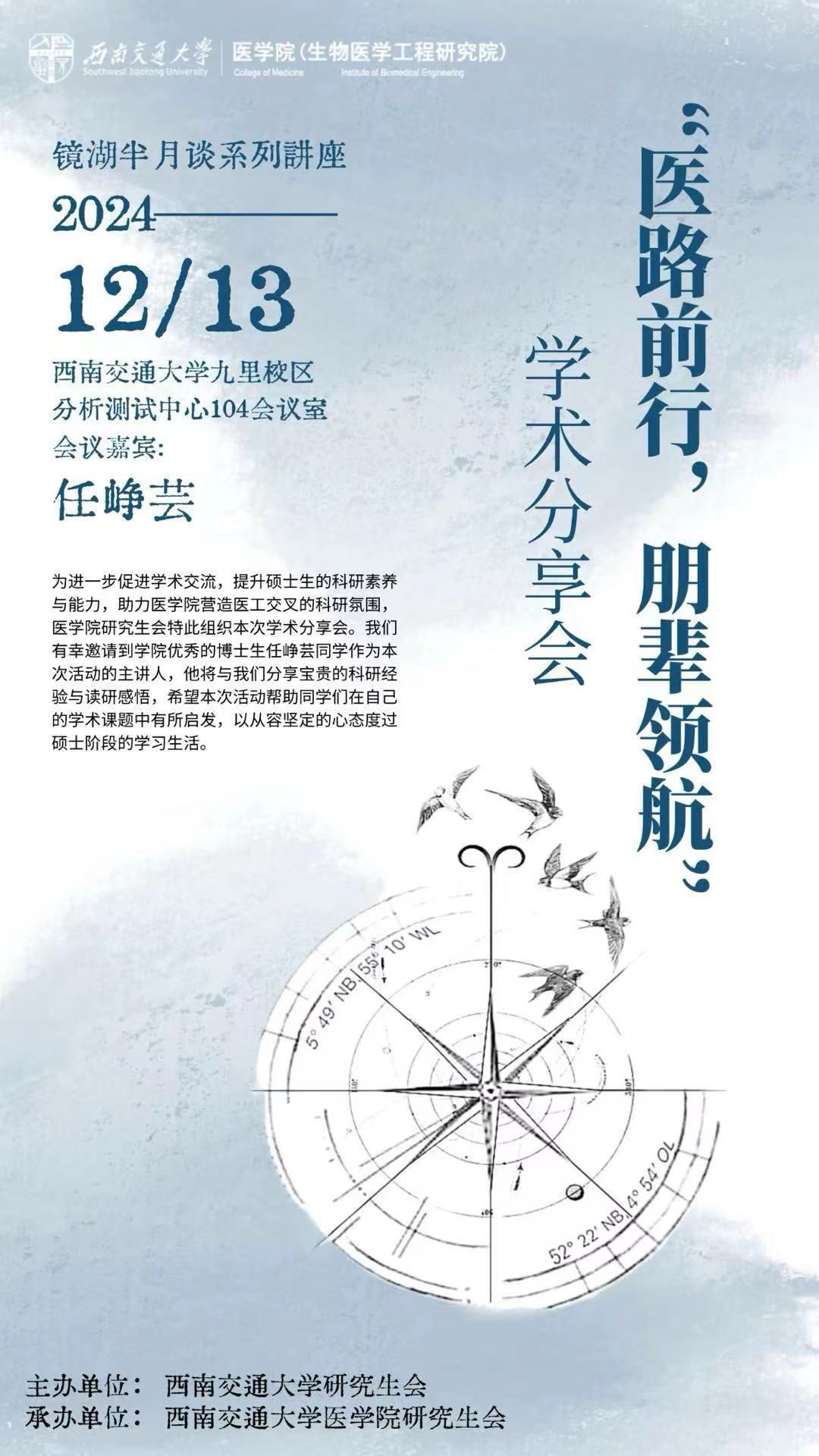 内容:为进一步促进学术交流,提升硕士生的科研素养与能力,助力36365线路检测中心营造医工交叉的科研氛围。36365线路检测中心研究生会特邀请学院优秀博士生代表任峥芸为同学们分享科研经验与读研感悟。