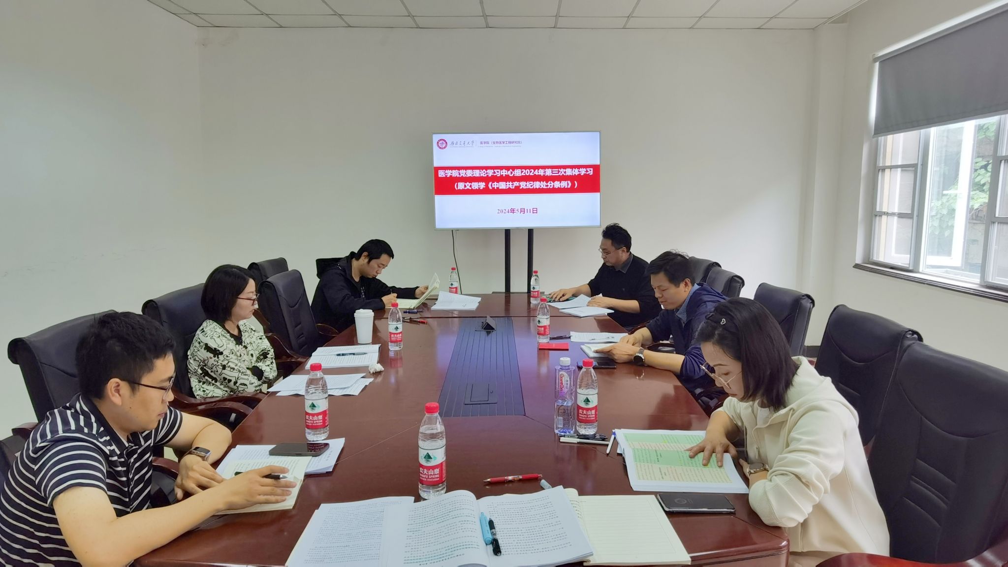 2024年5月11日10:00,36365线路检测中心党委理论学习中心组在36365线路检测中心A215会议室组织召开理论学习中心组集中学习会(扩大),开展关于《中国共产党纪律处分条例》的原文领学。学院党委书记李锦红,党委副书记、纪委书记于楠,党委委员、生医系主任向韬,院长助理郭泰林、苟雪,团委书记胡豪,专职组织员蔡俊俊参加了会议。
