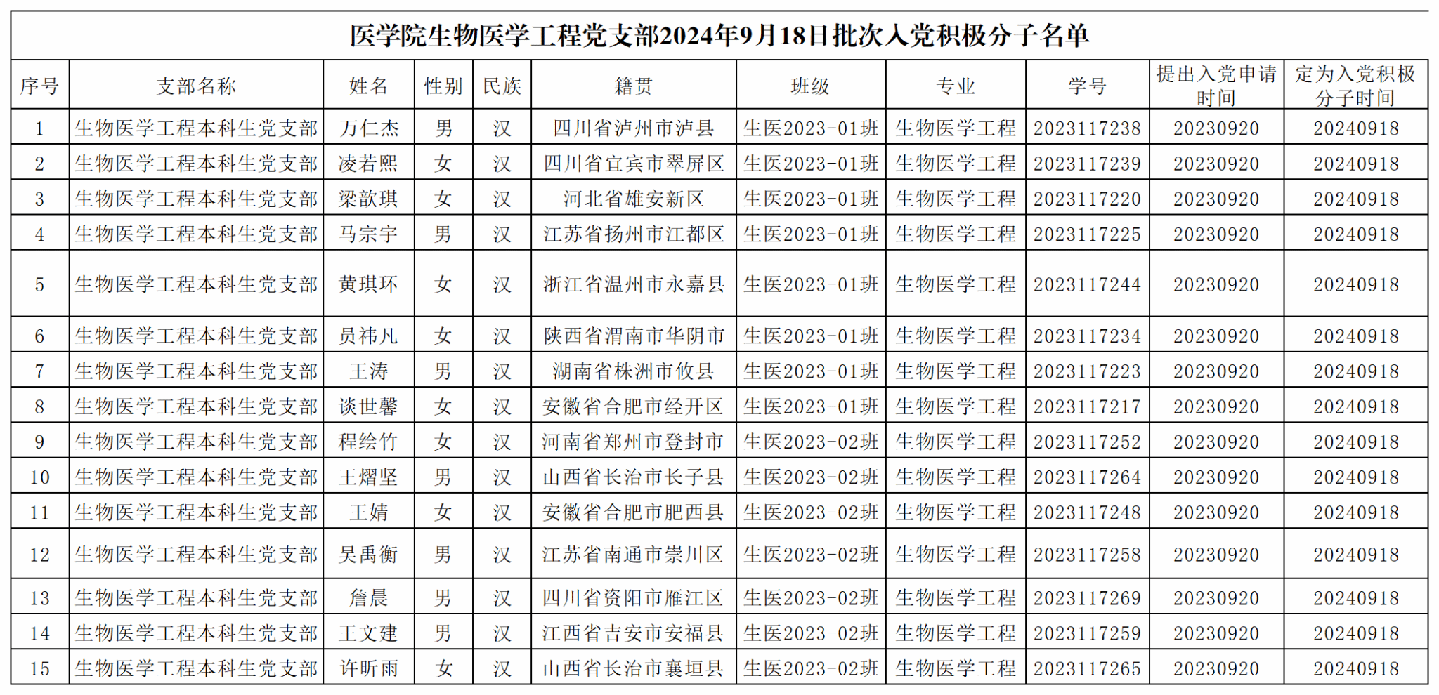 现将36365线路检测中心党委2024年秋季学期入党积极分子名单公示如下,公示期9月23日-9月27日,如有异议请以书面形式将意见反馈至36365线路检测中心X2414b办公室。