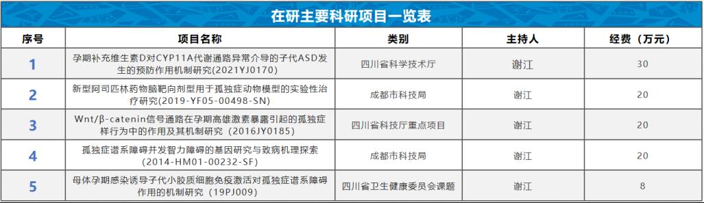 本团队由附属医院(成都市第三人民医院)儿童发育行为学专家谢江牵头。团队所在科室儿科依托成都市第三人民医院的医、教、研综合实力,已于2009年通过了“四川省儿科住院医师规范化培训基地”评审。团队主要从事儿童发育行为学、儿童肿瘤、生殖相关疾病的科研与临床。