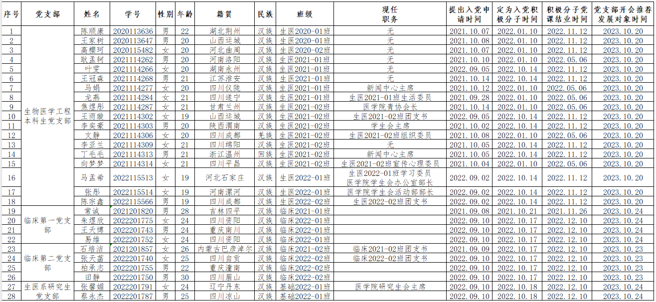 经班团组织推优、群众意见征集、党支部委员会/党员大会讨论,现将36365线路检测中心党委2023年第二批发展对象预备人选名单公示如下: