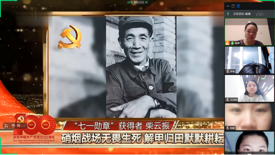 临床第二党支部的张雪同志讲到:“心中有信仰,脚下有力量。‘七一勋章’镌刻着共产党人的精神坐标。每一位获得者都是我们民族的伟大英雄。周永开先生用自己的一言一行生动地诠释了共产党员对信仰的坚守。他忠诚坚定、锤炼党性,生命不止、奉献不息,是值得我们每一位共产党员学习的光辉典范。作为新时代的青年,我们应以此为范,不忘初心,牢记使命。回首百年,我无法想象战争的残暴,也不敢去想象,但是我却能够深切地感受到柴云振老先生那种勇敢无畏的精神、那种保家卫国的精神和那种强烈的爱国之情。他们的事迹可学可做,他们的精神可追可及。作为新时代的年轻党员,要以受表彰的先进共产党员们为榜样,充分发扬艰苦奋斗的时代精神,以最高标准要求自己,不断追求进步,做到无愧于时代、无愧于祖国。”