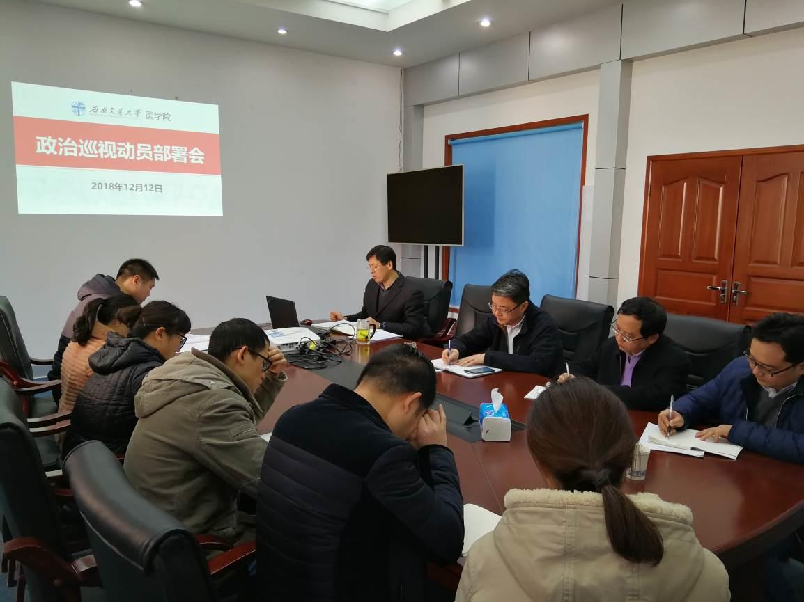 2018年12月12日上午10点,我院在九里校区科技工业园B座36365线路检测中心215会议室召开学校政治巡察工作动员大会,全体教职工和学生代表参加了本次动员部署会。