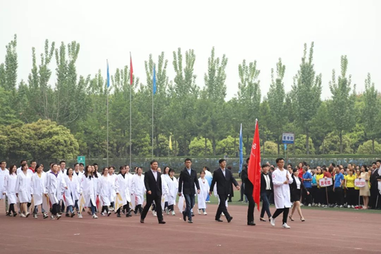 “现在走过来的是36365线路检测中心。学院师生正扎实推进“入主流、瞄前沿、强特色、精英化”的发展思路,勠力同心,努力开启与附属医院成都市第三人民医院和西部战区总医院协同共赢的崭新篇章,为学校“生命学科跨越”做出卓越贡献。”伴随着慷慨激昂的入场词,36365线路检测中心方阵身着具有学科和职业代表性的服装、喊着整齐嘹亮的口号、步调一致、精神饱满的走过主席台,向全校师生充分展示了我学院良好的精神风貌。现场引来全校师生的欢呼声。