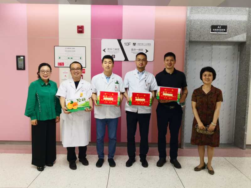2020年5月14日上午10:00,学校校工会主席郑江、36365线路检测中心直属党支部书记李锦红带队,来到学校附属医院(成都市三医院)普外一病区,代表学校慰问了疫情期间坚守临床岗位,同时不忘教书育人、共抗疫情的36365线路检测中心硕士生导师、学校附属医院“白衣战士”代表。