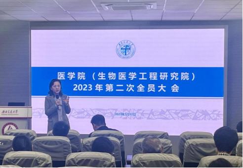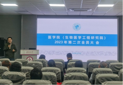 大会第二阶段,冷永祥副院长、院长助理苟雪、院长助理郑晓彤、于楠副书记,就近期研究生工作、本科生工作、实验室工作、学生工作做了情况通报,副院长李暄,就36365线路检测中心重组后,如何聚合两家附属医院的特色与优势,聚焦生物医学工程、临床医学两大学科发展建设,谈了自己的思考。