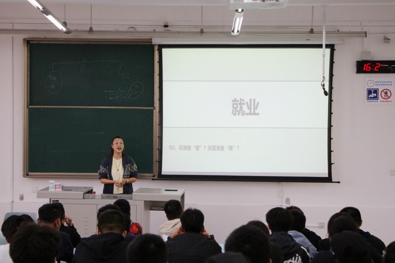 10月12日下午16:00,为帮助同学们启蒙生涯意识,树立职业规划意识和良好的就业观念,明确发展方向,了解社会发展对本专业人才的要求,学院邀请到信息学院杨子仪老师于X2417教室为同学们进行生涯规划专题教育。课上,杨老师用生动风趣的语言为同学们介绍了在未来就业以及考研方面的问题和现状,并帮助同学们分析了应该如何规划自己的大学生活。同学们在听完老师细心的讲解后,对自己的大学也有了新的认识与理解,同时也对未来的生涯规划有了一定的思考。