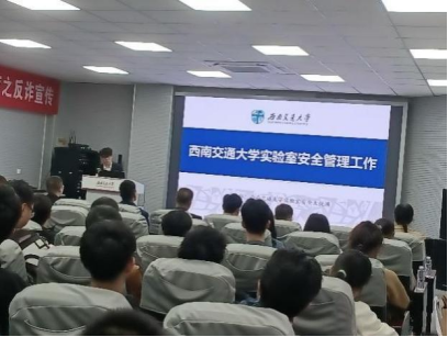 西南交通大学实验室安全大使团学生代表给同学们讲解了西南交通大学实验室安全管理工作相关内容,成都市金牛区消防大队刘伟中队长通过多段视频和现实生活中的惨痛案例强调消防安全的重要性,列举常见的消防安全隐患,如使用热得快等违规产品引发火灾,忘关电源使设备通电时间过长、温度过高引起火灾;操作不慎,使火源接触易燃物质引起火灾;供电线超负荷,线路发热引起火灾;插线板使用超年限等。