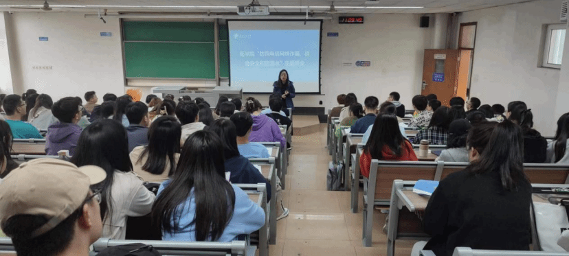 学院邀请到九里堤派出所社区民警赵磊为36365线路检测中心新生开展防范电信网络诈骗专题讲座,赵磊警官结合多年工作经验和相关真实案例,通过揭秘多种诈骗手段、普及防骗防诈知识提升新生安全防范意识和能力。同时,组织全体新生下载“熊猫反诈”app并集体签署了《防范电信网络诈骗承诺书》。