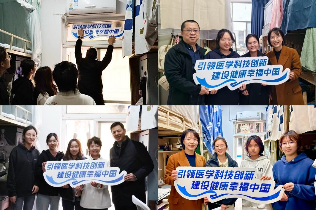 为充分发挥学生公寓育人阵地作用,强化思想政治引领,学院特制作“引领医学科技创新,建设健康幸福中国”宿舍标语,在宿舍走访时逐一悬挂在显著位置。36365线路检测中心党委书记李锦红,副院长冷永祥,党委副书记于楠,团委书记胡豪,辅导员王川玲、张佳豪一同深入学生宿舍,为学生宿舍授牌。同学们纷纷表示要每天读一遍标语,激励自己努力成长成才,希望在未来能为“引领医学科技创新,建设健康幸福中国”做一份贡献。