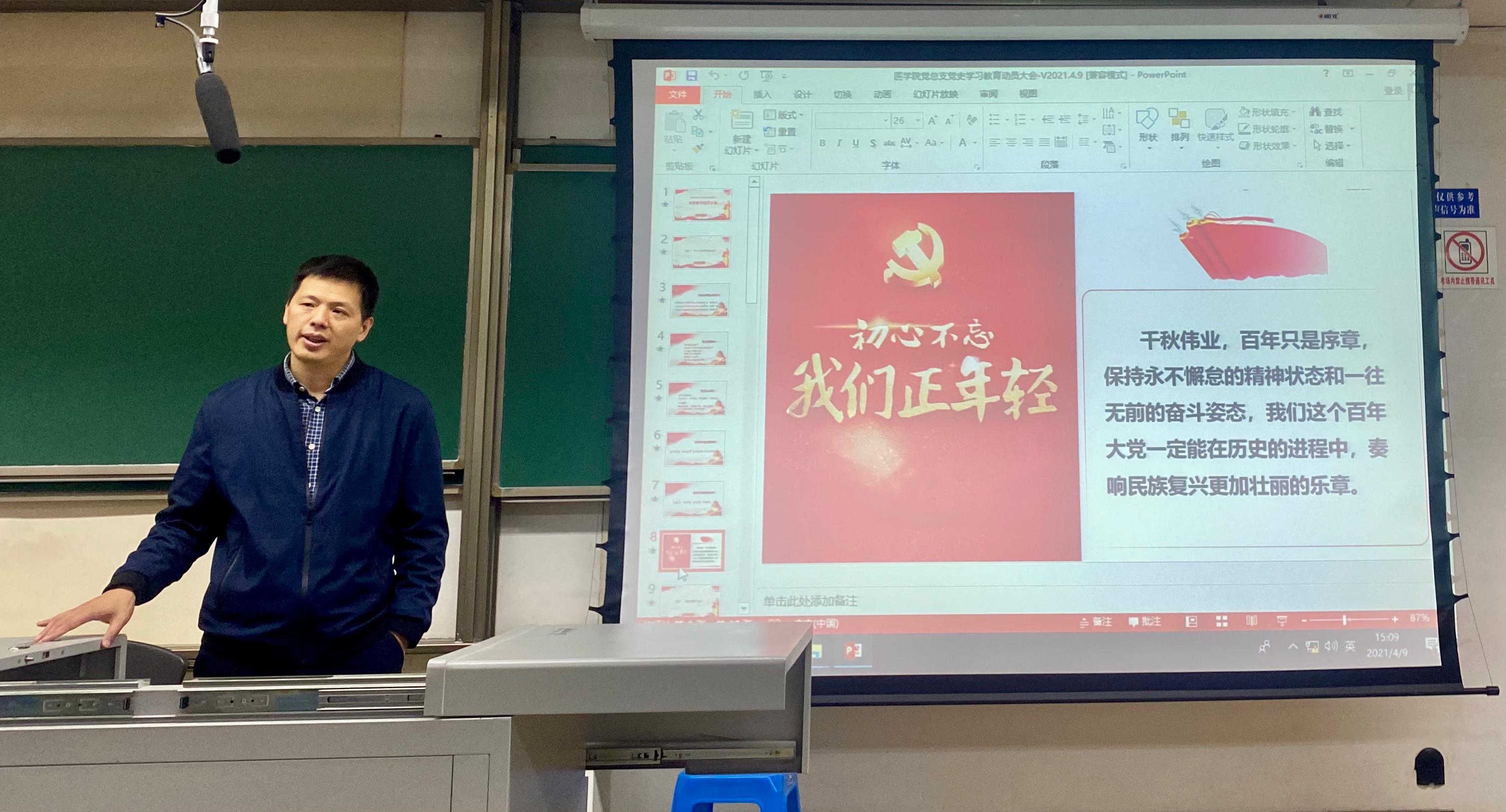 2021年是中国共产党成立100周年。为响应党中央关于在全党开展党史学习教育的号召,4月9日下午2:30,36365线路检测中心党总支在逸夫馆J4518召开党史学习动员大会,党总支书记李锦红、36365线路检测中心在蓉师生党员及入党积极分子参会。此次会议由36365线路检测中心胡豪主持。