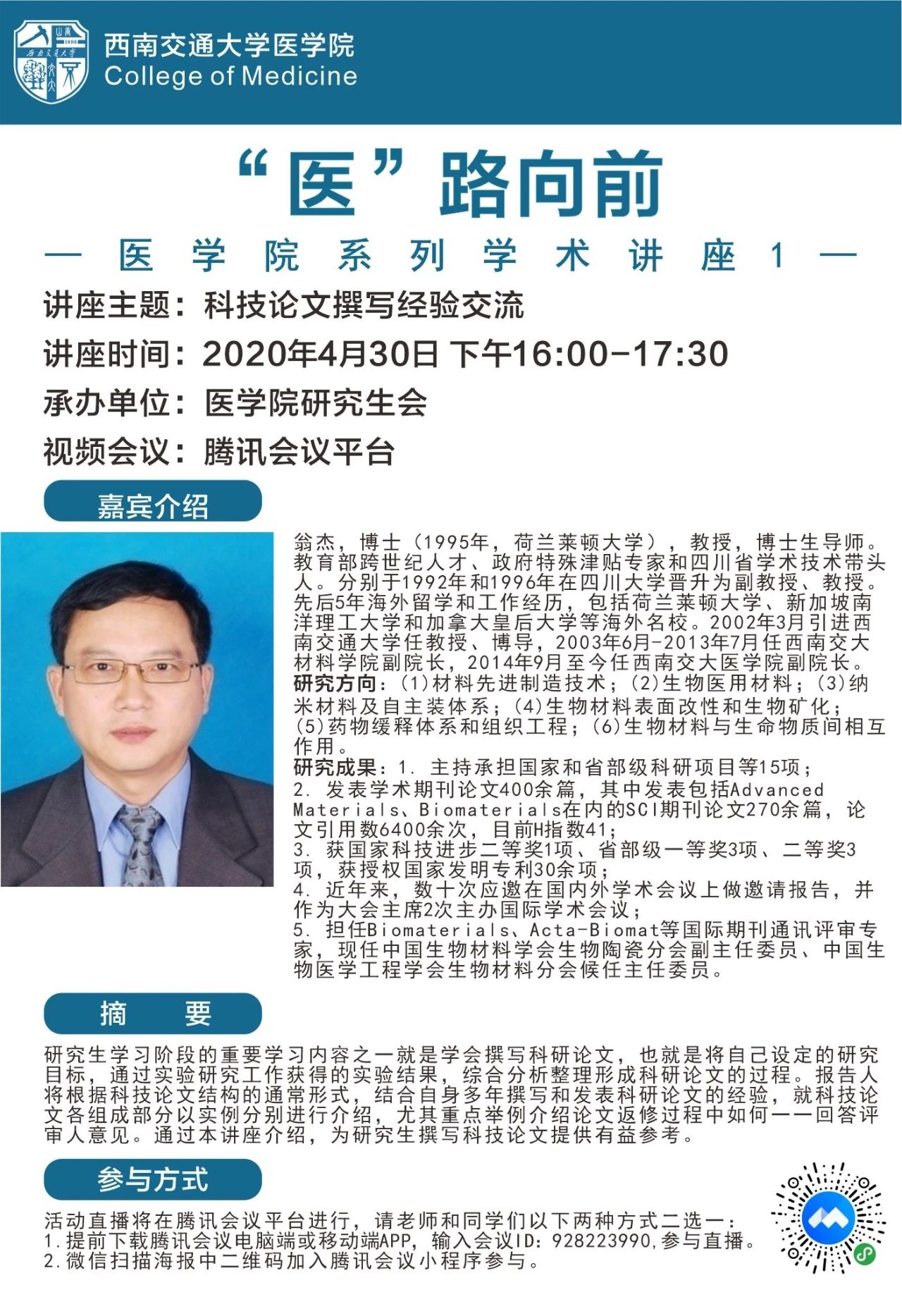 嘉宾介绍:翁杰,博士(1995年,荷兰莱顿大学),教授,博士生导师。教育部跨世纪人才、政府特殊津贴专家和四川省学术技术带头人。分别于1992年和1996年在四川大学晋升为副教授、教授。先后5年海外留学和工作经历,包括荷兰莱顿大学、新加坡南洋理工大学和加拿大皇后大学等海外名校。2002年3月引进西南交通大学任教授、博导,2003年6月-2013年7月任西南交大材料学院副院长,2014年9月至今任西南交大36365线路检测中心副院长。