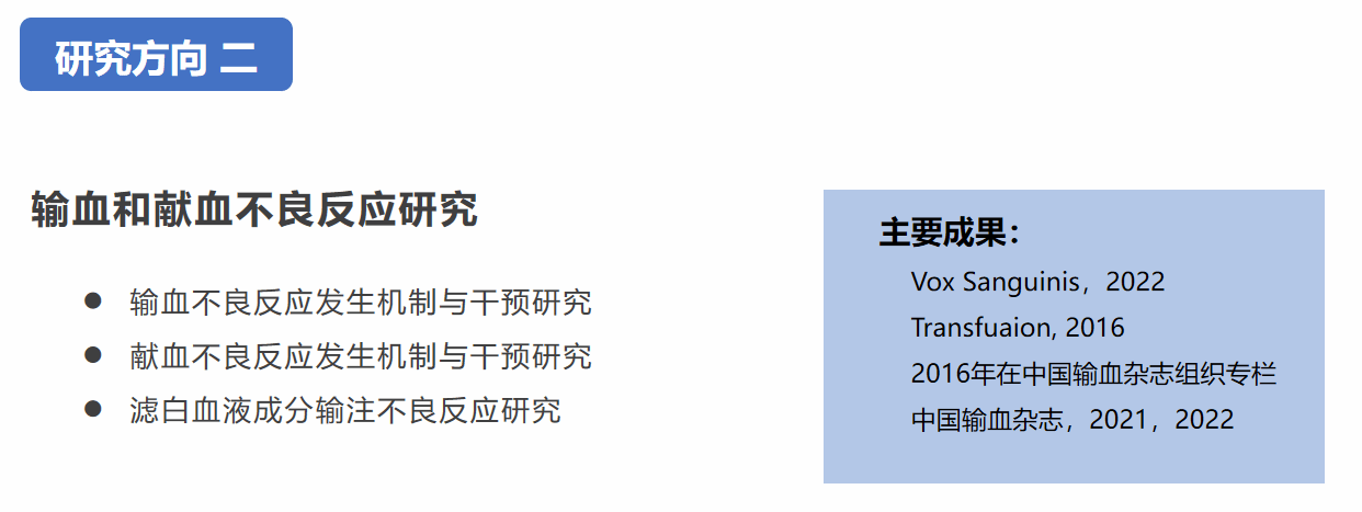 团队主要研究方向为临床输血、输血治疗、血液安全。